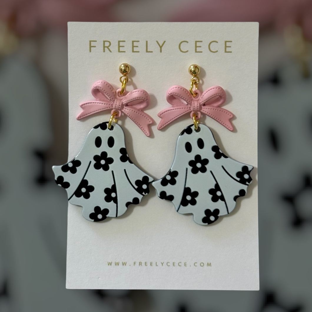 Pink Bow Floral Ghost Earrings